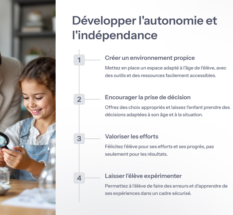 Ce processus doit se traduire par un transfert des apprentissages dans divers domaines de la vie, car l'autonomie se construit dans la diversité des situations.